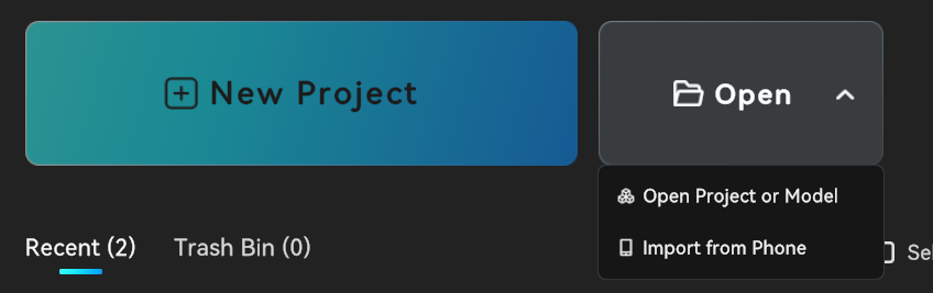 ③ The middle panel displays a multi-project list for "Recent Projects". Click on the corresponding image to open the respective multi-project. The "Recycle Bin" allows you to restore or permanently delete projects, and the "Search Bar" enables you to search for existing projects.