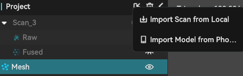 After finished the scanning, the original point cloud and fused point cloud can be edited and processed using the bottom toolbar.