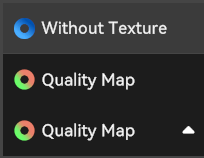 | Point Cloud Rendering Mode Switch: Supports switching between three modes: Color Model, White Model, and Quality Chromatogram. The chromatogram is displayed by default. In the Quality Chromatogram mode, it is recommended to fully scan until the point cloud of the scanned object turns green, then click "Complete Scanning" to enter subsequent processing. The upper left corner displays the number of frames collected so far, the number of historically collected points, the current device temperature of the scanner, and the acquisition frame rate. | |