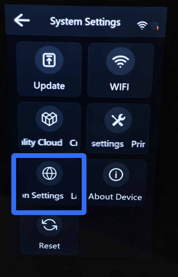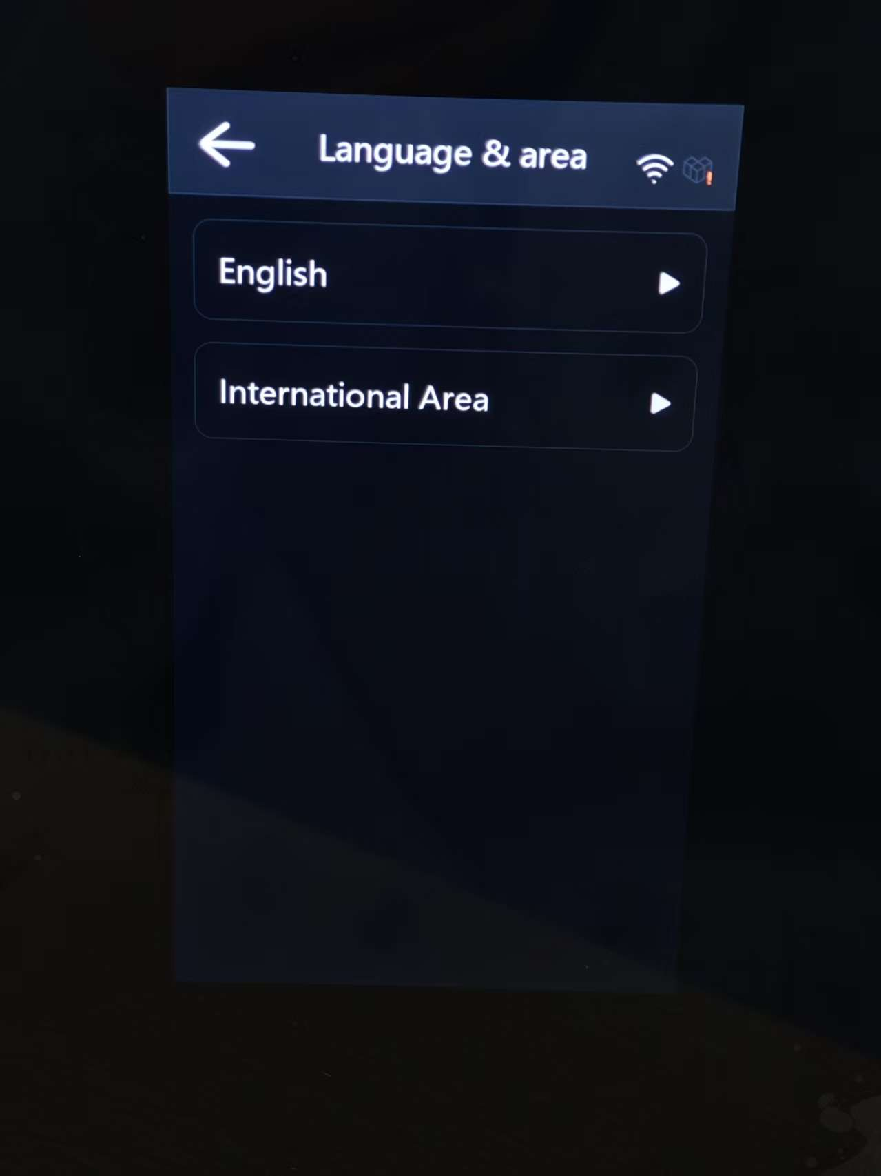 ⑸. Language & Area: Set the display language and region. To ensure proper Creality Cloud service, the region setting should match the registration region of your Creality Cloud account.