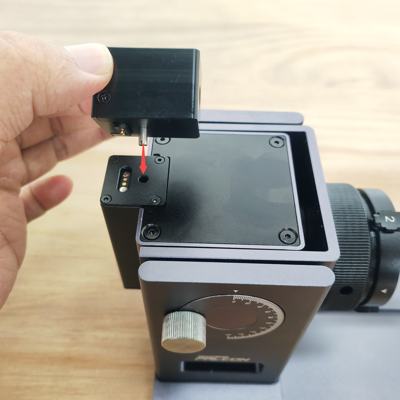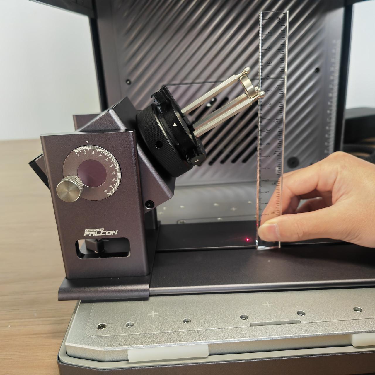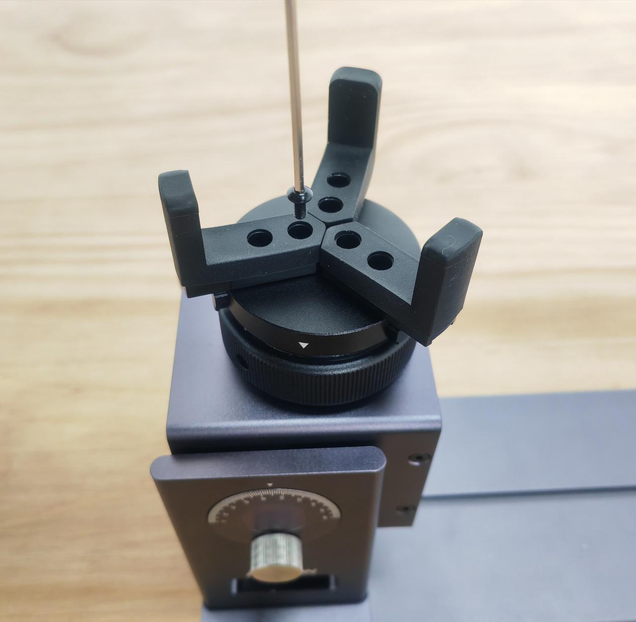 Place the chuck in the T1 workspace, connect T1 and the chuck using a Mini-A data cable. Adjust the position of the chuck so that the T1 laser red dot falls on the chuck base plate.