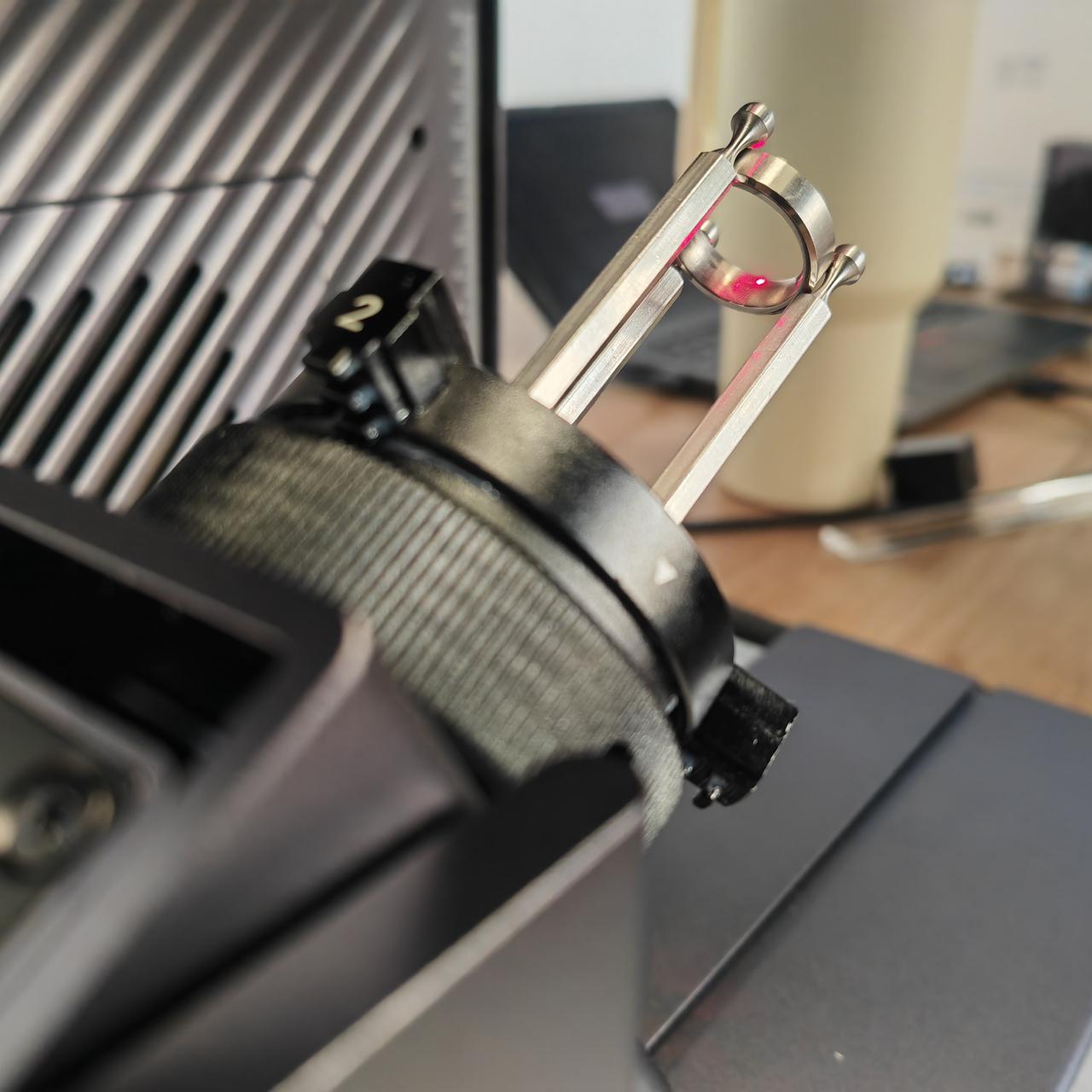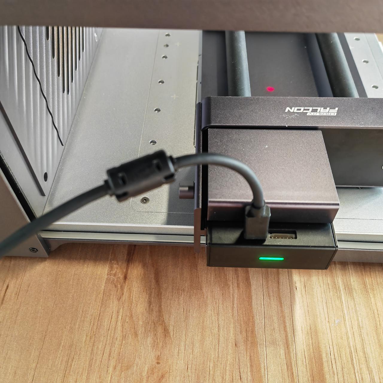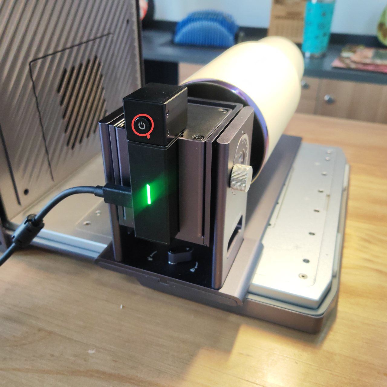 Place the chuck in the T1 workspace, connect T1 and the chuck using a Mini-A data cable. Adjust the position of the chuck so that the T1 laser red dot falls on the chuck base plate.