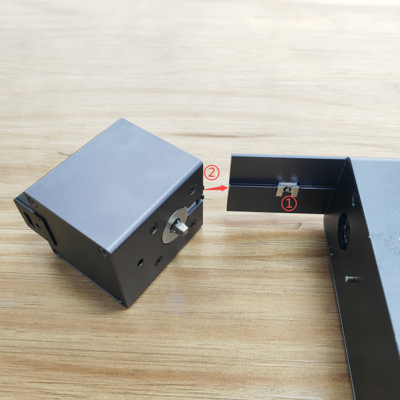 Loosen the nut at position ①, align the motor module slot with the drum slot, and push the motor module into the drum.