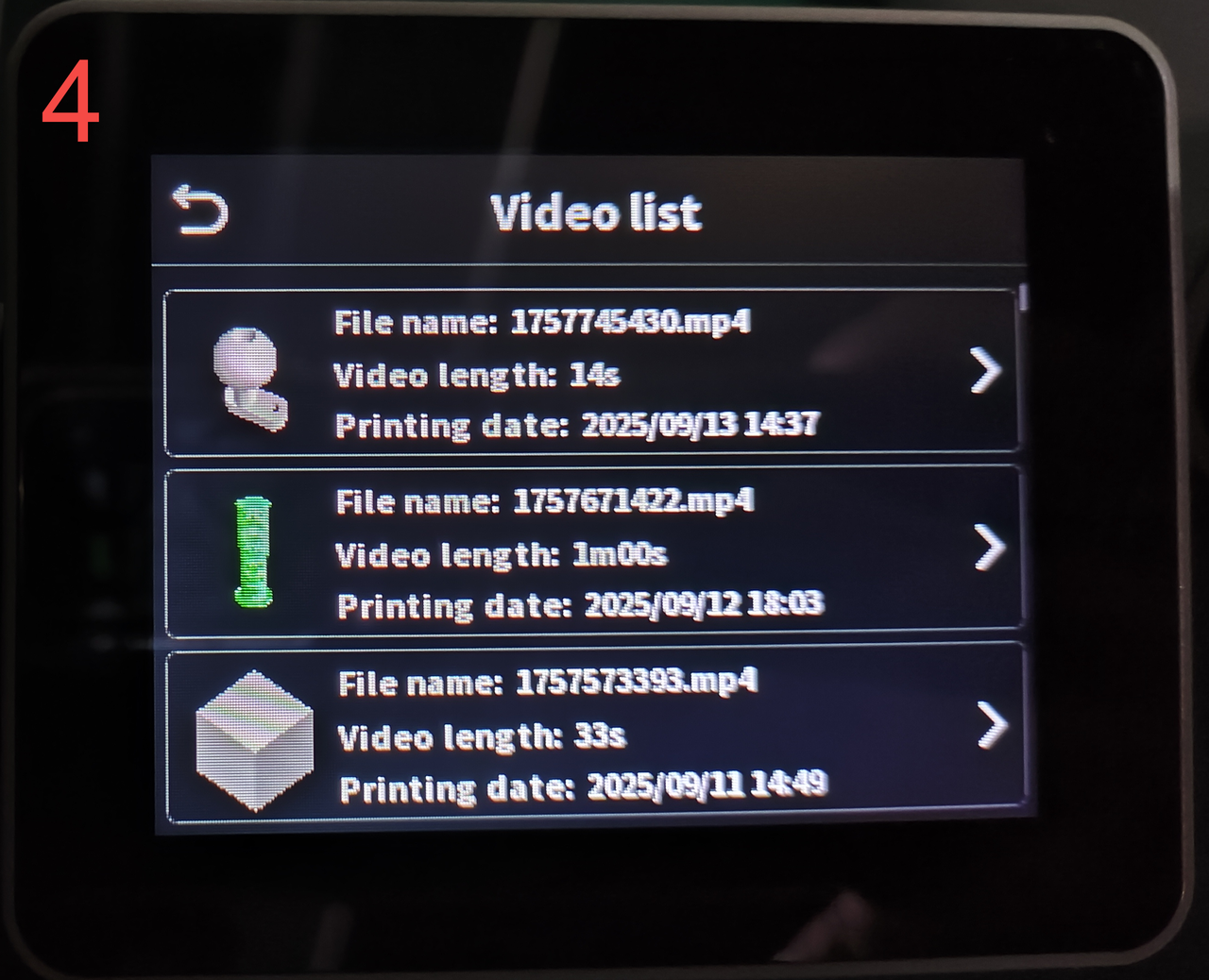 After printing, the time-lapse video is saved under: Settings → System → Camera → Video List.