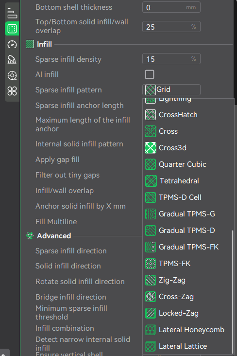 We’ve added a series of high-performance sparse infill patterns optimized for strength, weight, print speed, and functional behavior.