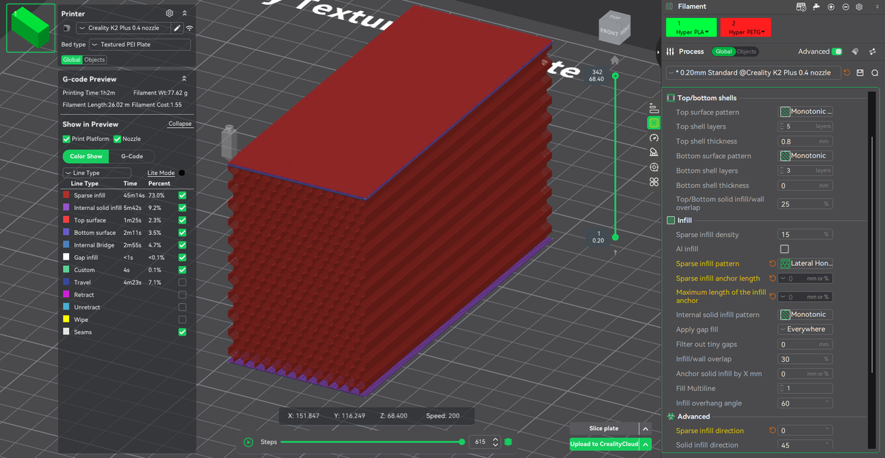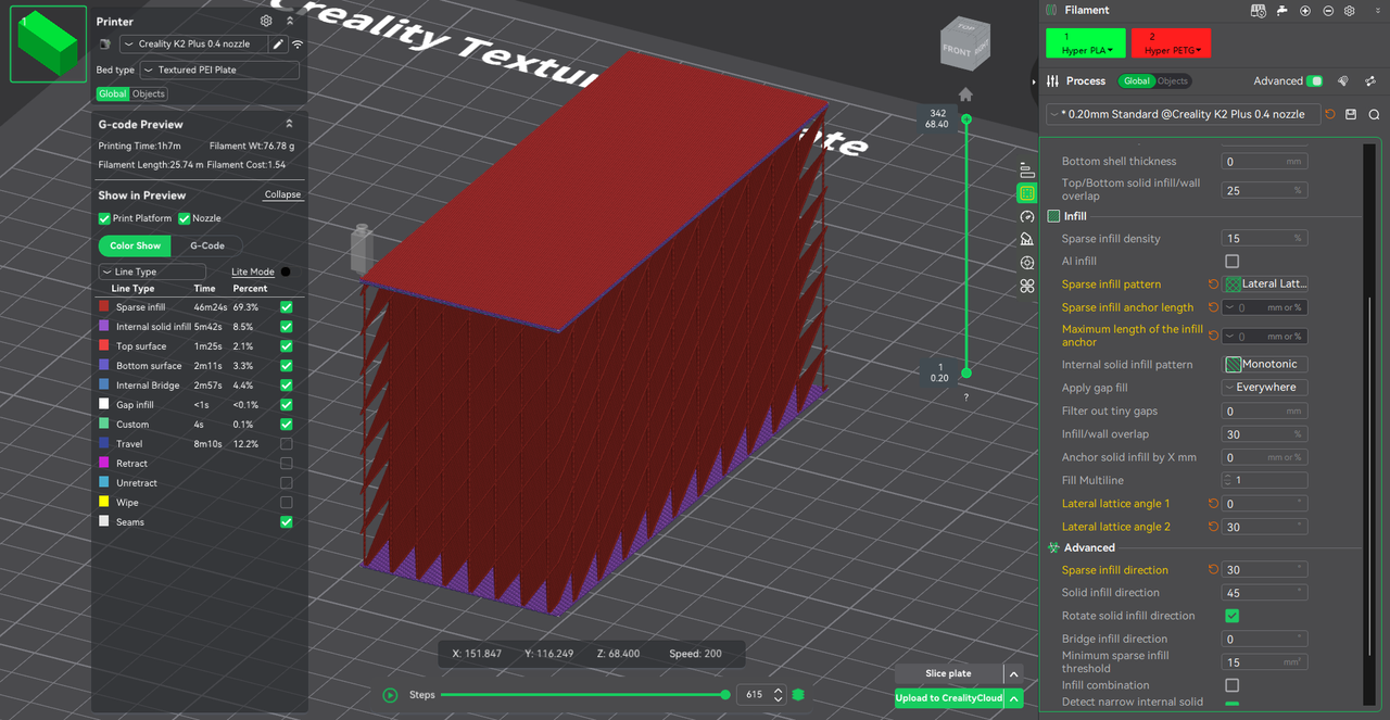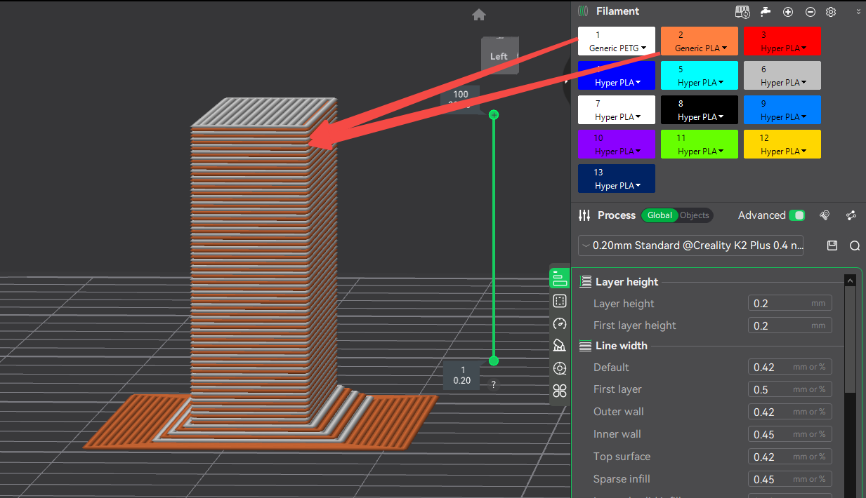 For K2 plus printer running firmware below above version, please refer to the documentation here: Printing Time & Filament Estimation Accuracy——Firmware and Slicer Version Compatibility Guide