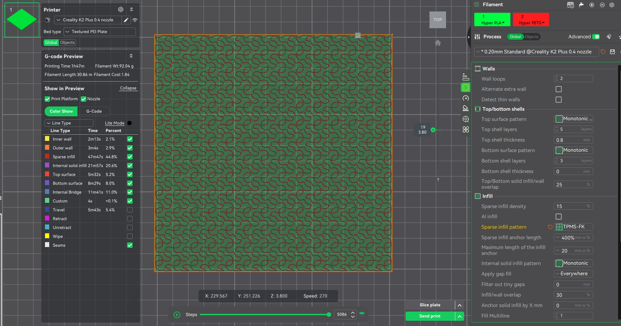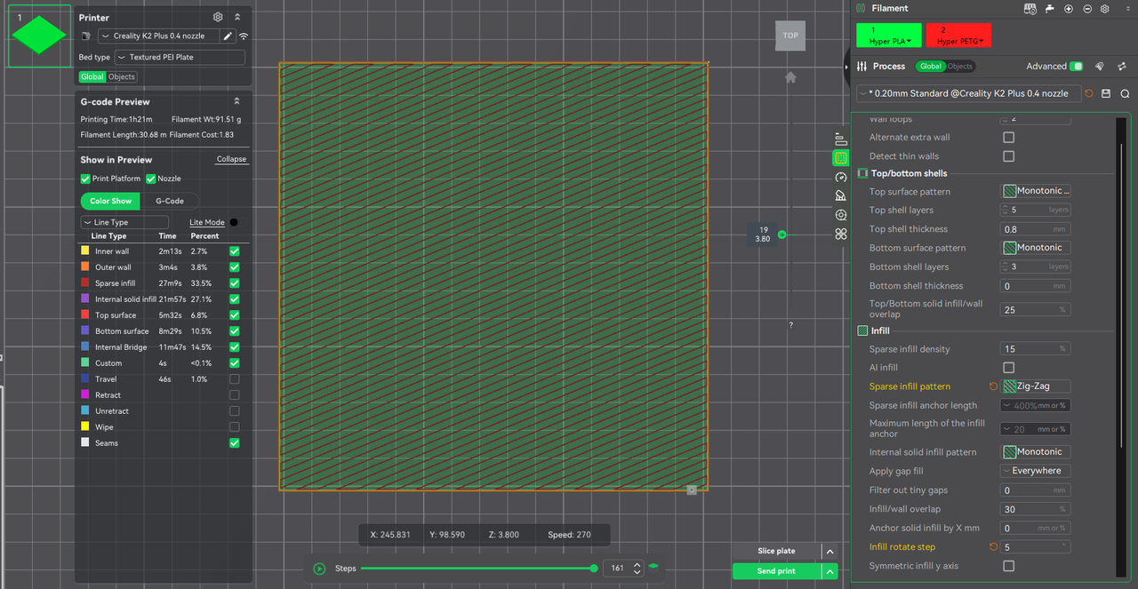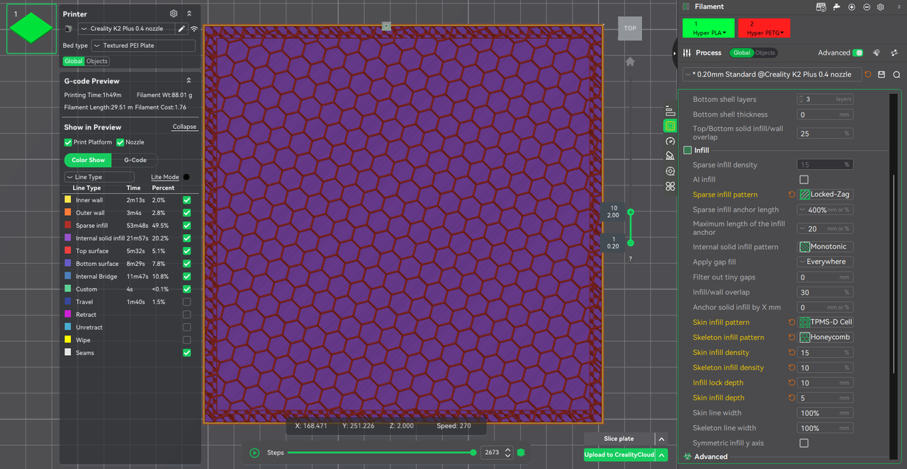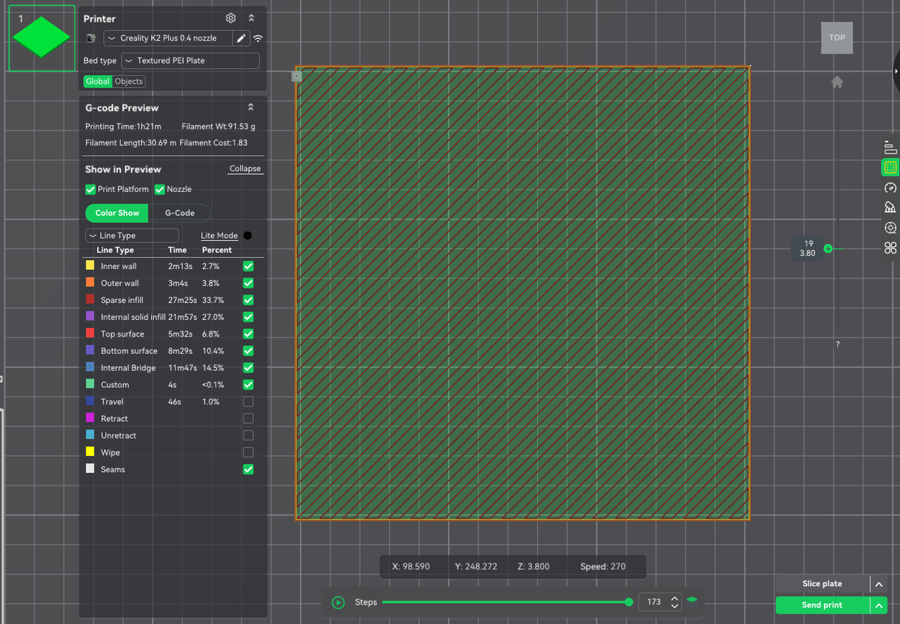 For K2 plus printer running firmware below above version, please refer to the documentation here: Printing Time & Filament Estimation Accuracy——Firmware and Slicer Version Compatibility Guide