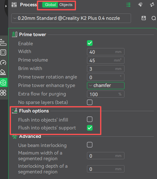 Applicable scenario: For print jobs where only the model shape matters and color accuracy is not required, enabling this option can direct most flushing into the object itself, significantly saving filament.