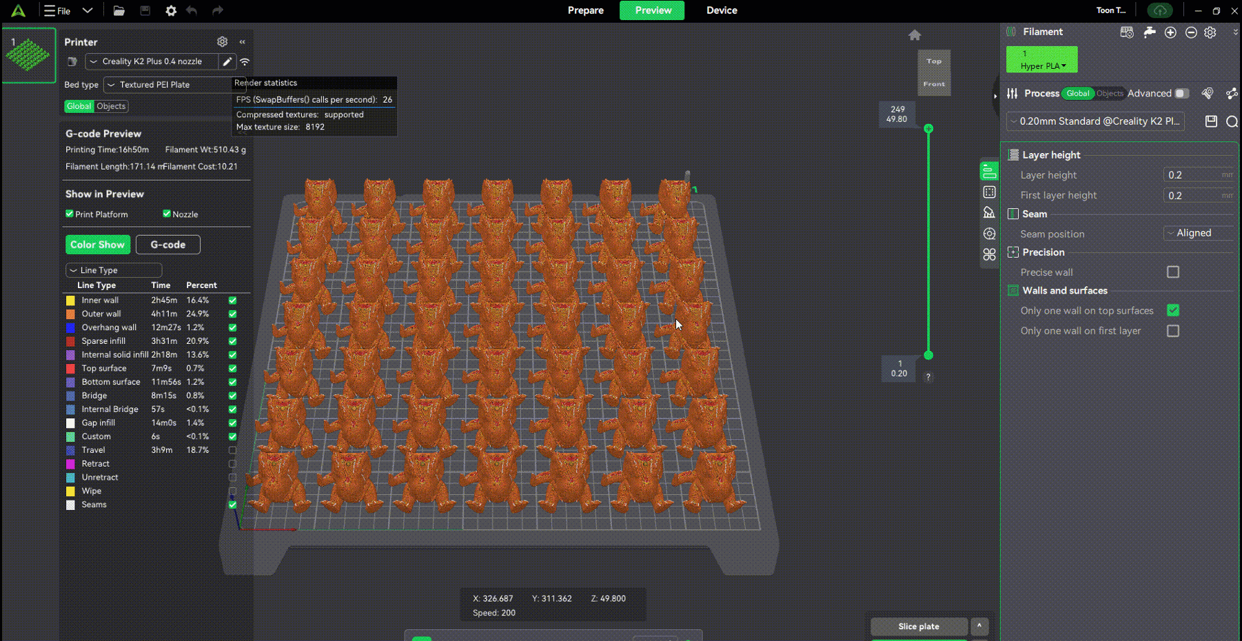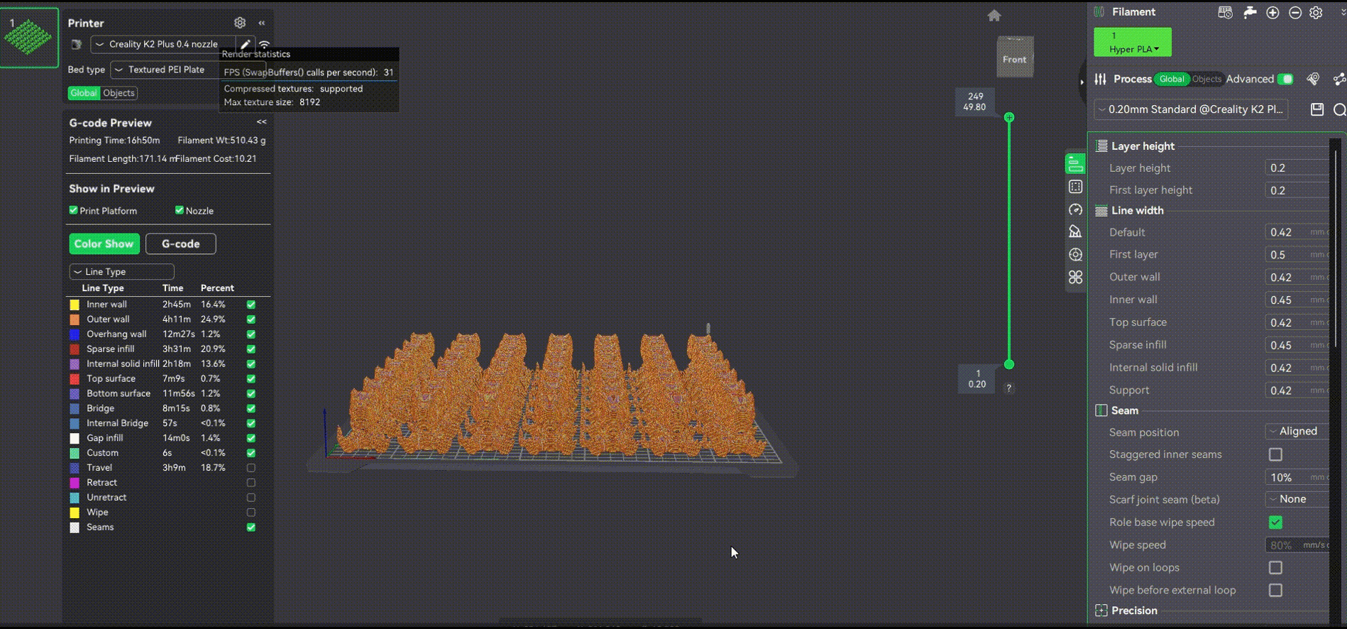 Multi-color printing: Print time estimation error is reduced to less than 5%. The new version decomposes the entire printing process, performs detailed estimation and error analysis, and delivers much more accurate print time predictions.