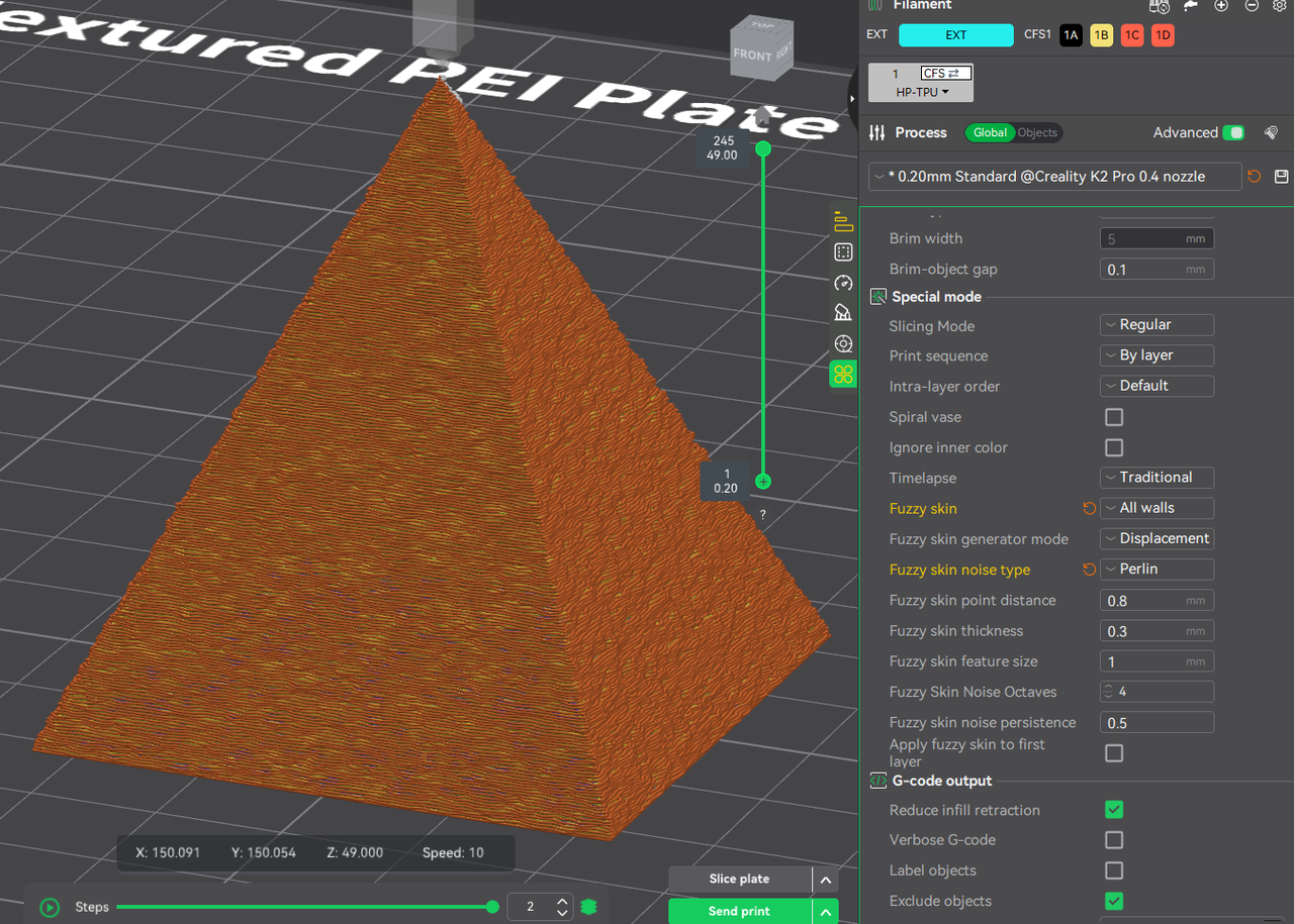 Supports freeform painting of fuzzy skin regions for localized texture control.