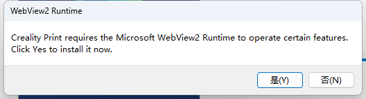 After the Edge installation is complete, restart CrealityPrint,select Yes in the pop-up window, CrealityPrint will be launched automatically after the installation is complete.
