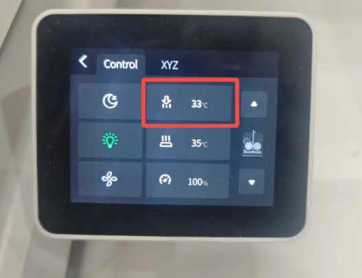 On the control page, lower the nozzle temperature to 80 °C and wait for the nozzle to cool down.