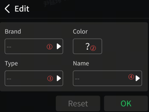 On the Printer Screen, tap Filament, then tap the Edit button. Enter the filament information and tap OK.