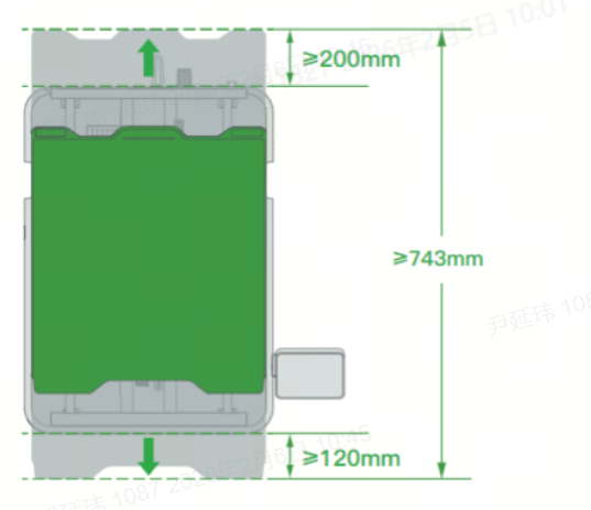 However, to prevent the heated bed cable from colliding with objects behind the printer, and to avoid contact with the user when the bed moves to the frontmost position, we recommend leaving additional clearance: