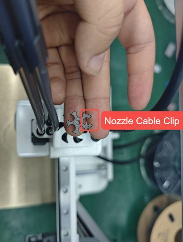 Attach the five-port clip, ensuring correct direction; the longer clip secures the tool head wiring.