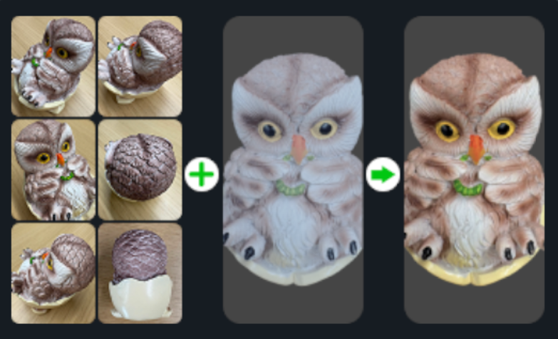 AI重贴图支持使用手机或单反等设备采集高清图片应用于已扫描的模型,从而生成更精细的纹理模型。