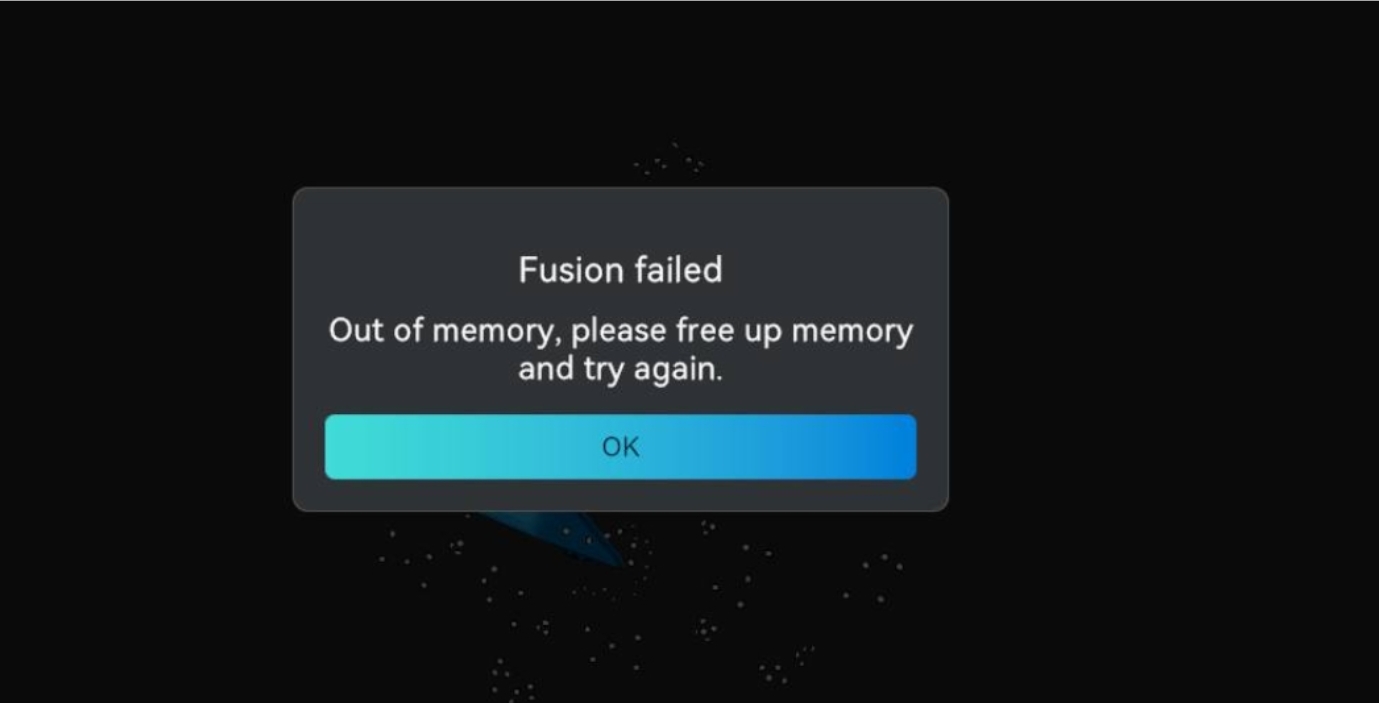 如果配置符合要求,可能是其他在后台运行的软件占用了大部分内存,导致 Creality Scan 无法正常进行融合或封装。请尝试关闭其他非必要软件以释放内存,然后重新进行融合或封装。