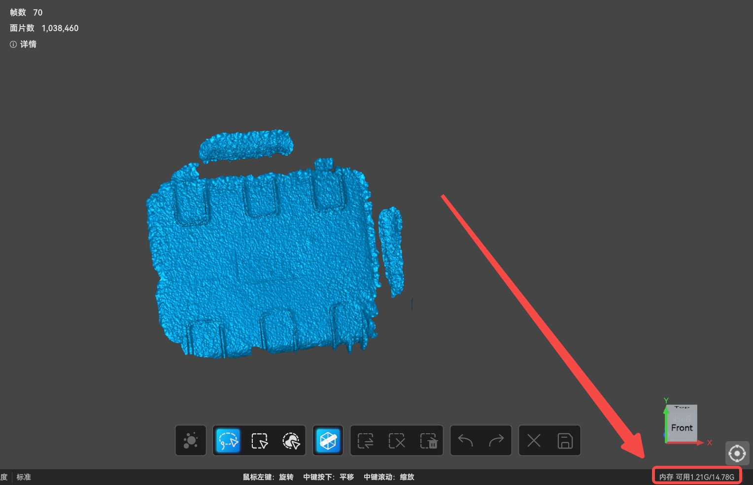 您也可以尝试每次只扫描物体的一部分,减少单次扫描的数据量。扫描完成后,通过软件的拼接功能将多个部分组合成一个完整的模型,而不是一次性扫描整个物体。建议调整点距或将扫描分成多个部分,使每个部分的网格面数较少,然后使用拼接功能将它们合并。