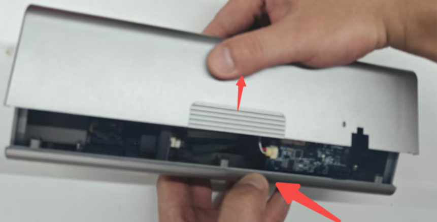 5.取出切刀模组后,按住外壳边缘位置,向上取出磁吸外壳。如图所示: