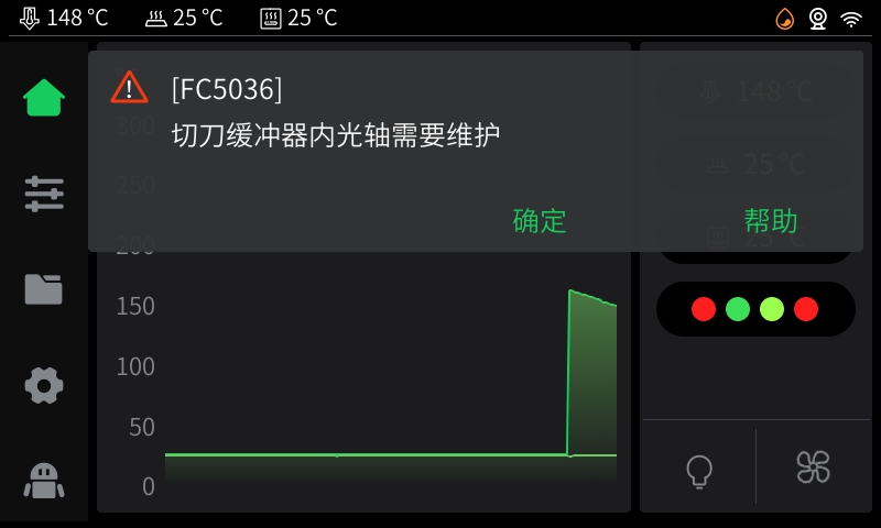 CFS-C系统实时记录切刀切割耗材的有效次数;当切刀切割次数达到6万次后,打印机将会弹窗提示。