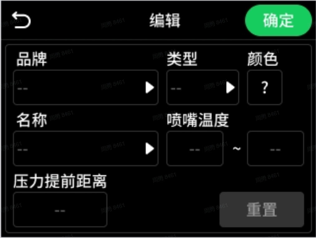 当插入普通耗材时,机器自动张紧读取后,界面将会显示‘?’,点击编辑按钮,可以手动编辑耗材。