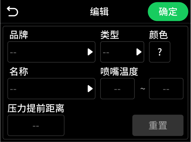 当插入普通耗材时,机器自动张紧读取后,界面将会显示‘?’,点击编辑按钮,可以手动编辑耗材。