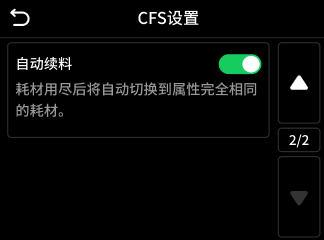 自动续料是当同颜色,同类型耗材用完后,如果料仓有相同耗材,会激活自动续料,耗材用完后不会提醒续料,会自动续料。