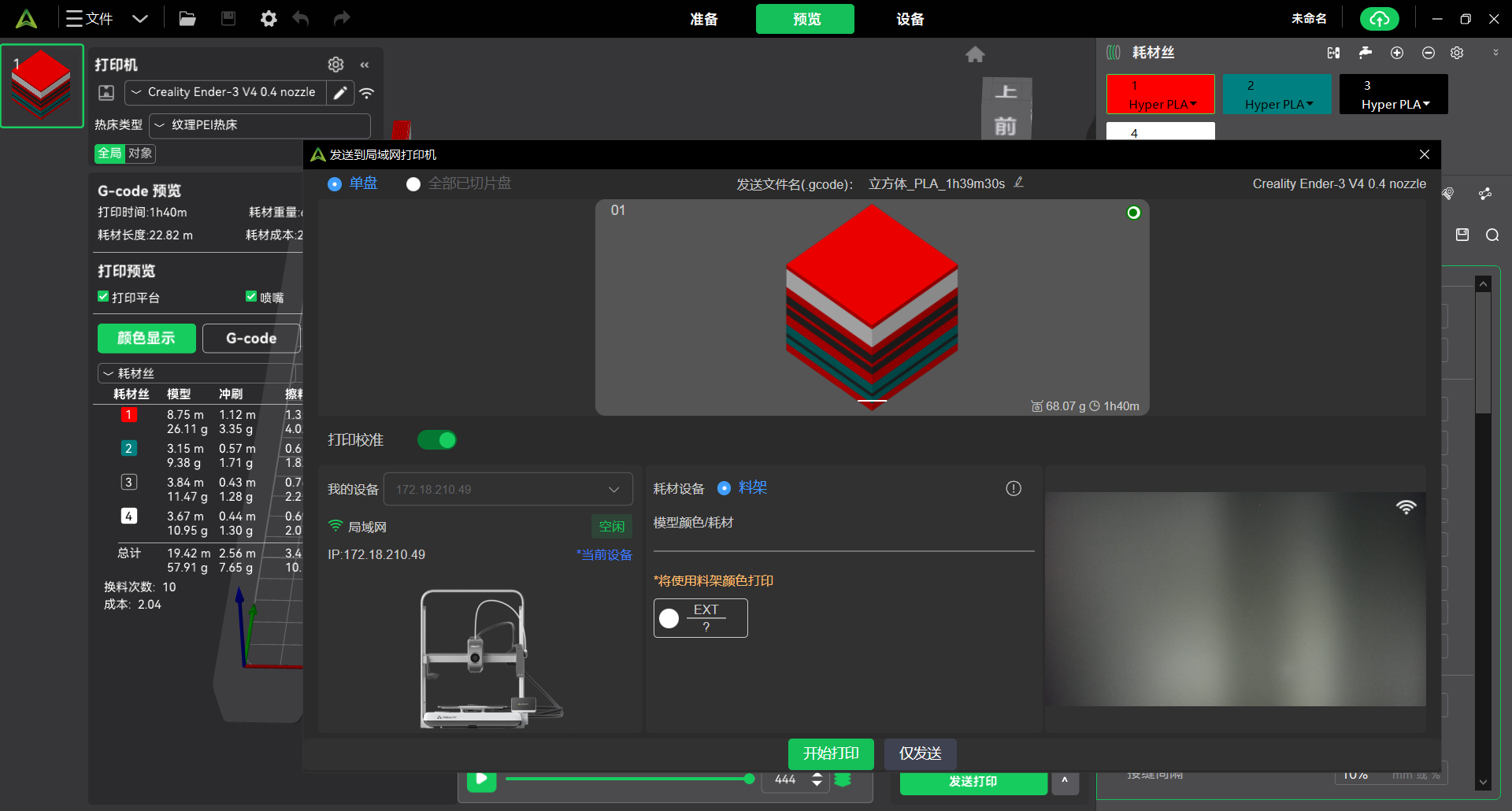 [正在打印中的机器仅支持发送gcode,不支持打印;未连接CFS的机器及非多色机器不支持耗材映射]