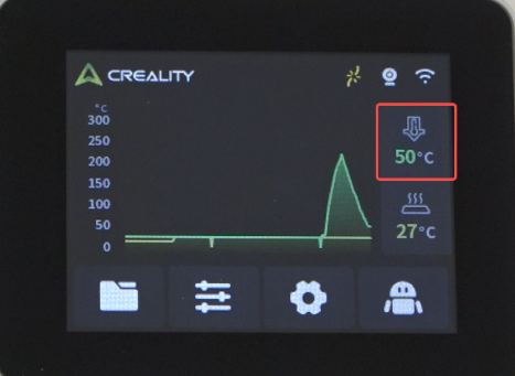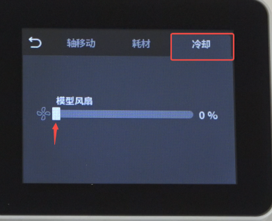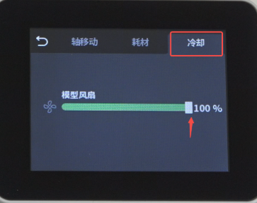 冷却喷嘴,点击“冷却”,将模型风扇速度调至100%,加速冷却,待喷嘴温度降至常温即可