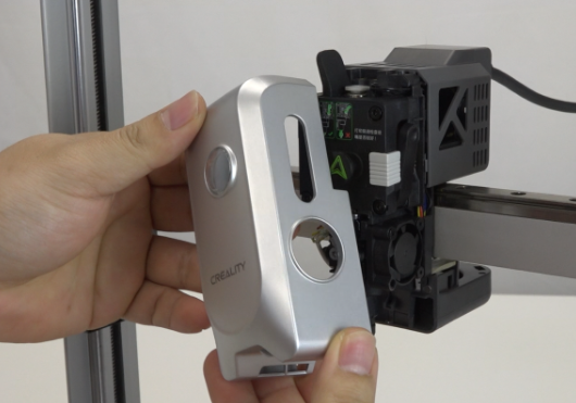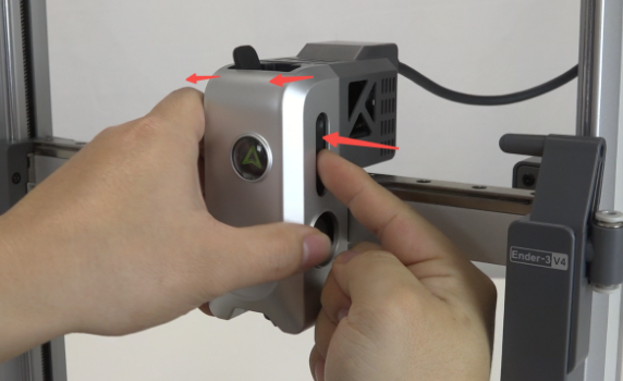安装磁吸前壳,注意:安装时要将切刀推杆按进去