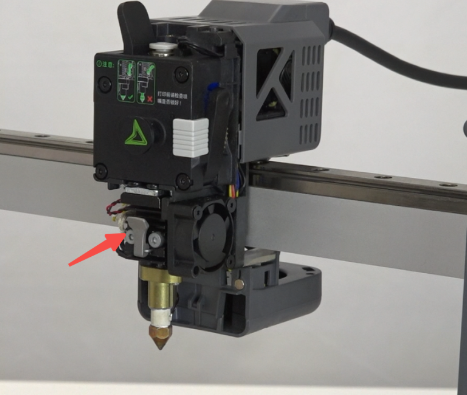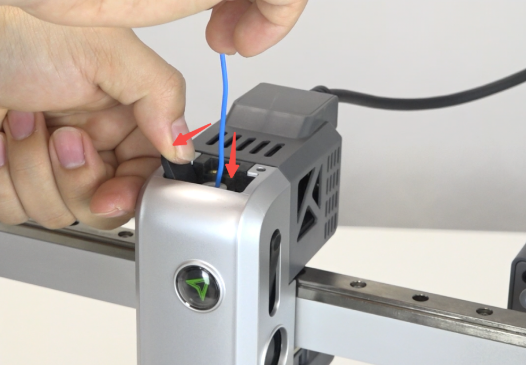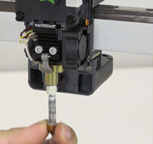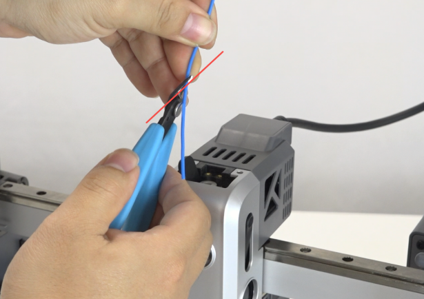 装载耗材,斜45°角裁剪耗材,打开挤出夹将耗材插入挤出机内