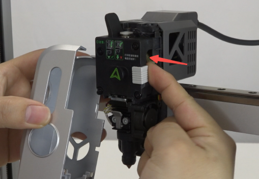 向下拨喷嘴卡扣,注意:卡扣要往里推一下,防止喷嘴卡扣滑出阻碍喷嘴拆卸。