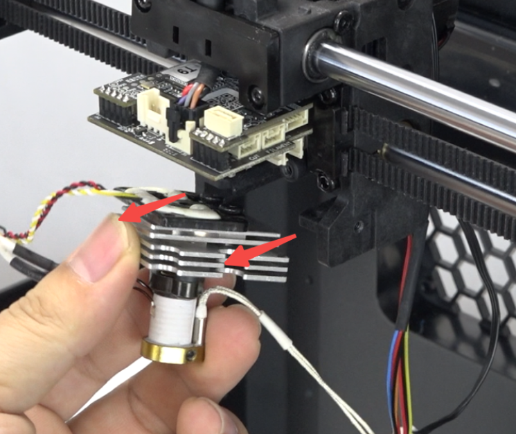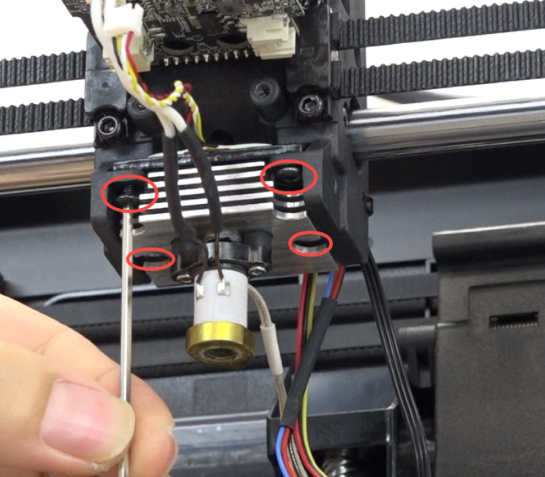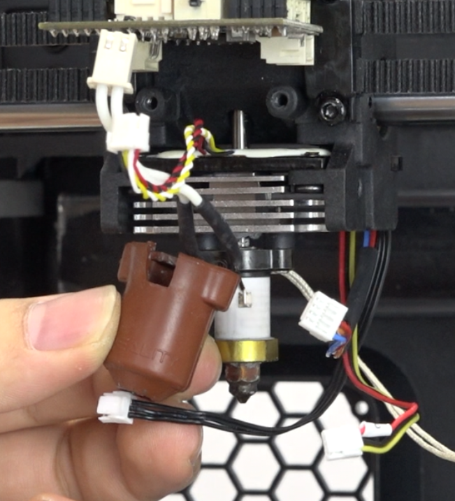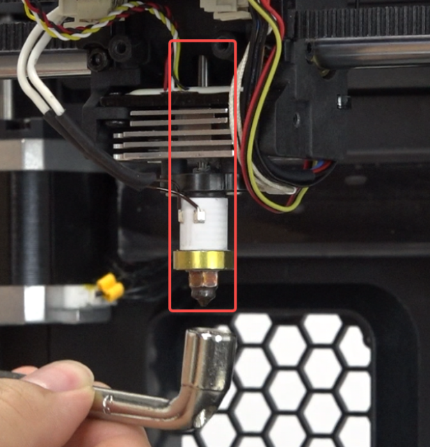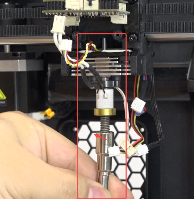 更换前,请将挤出机内的耗材退出,并将热床移动至底部。