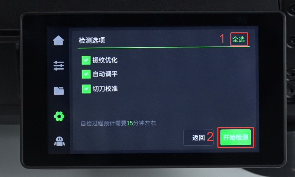 点击“设置”—“设备自检”—“全选”—“开始检测”,等待检测完成
