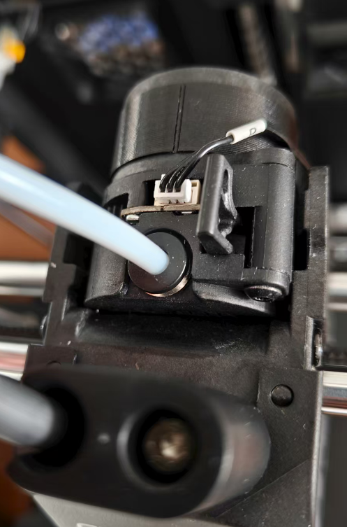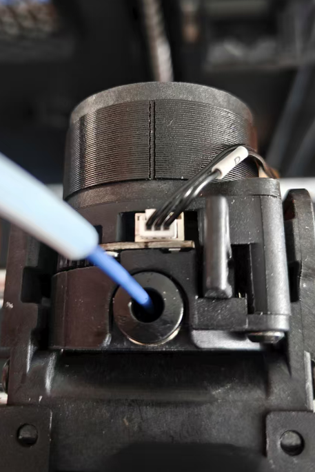 4. 查看耗材位置,确定耗材安装到位后,将铁氟龙管接回气动塞。