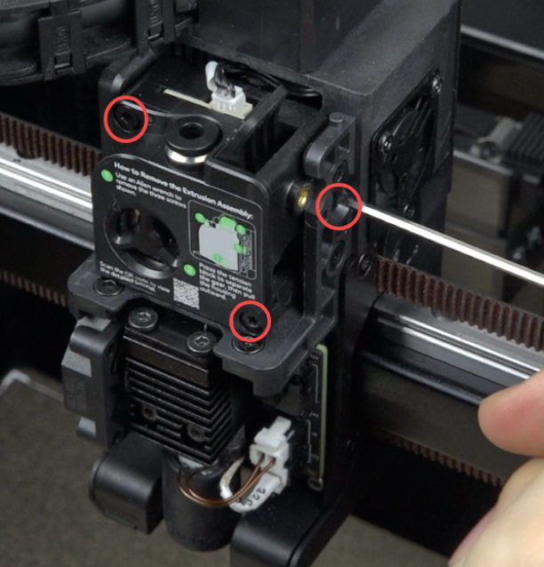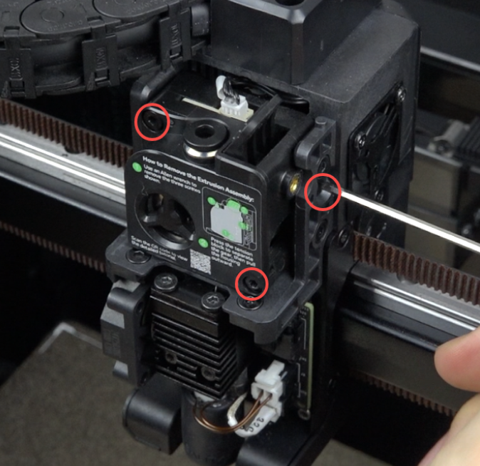 使用内六角扳手拧下固定挤出前壳的3颗螺丝。