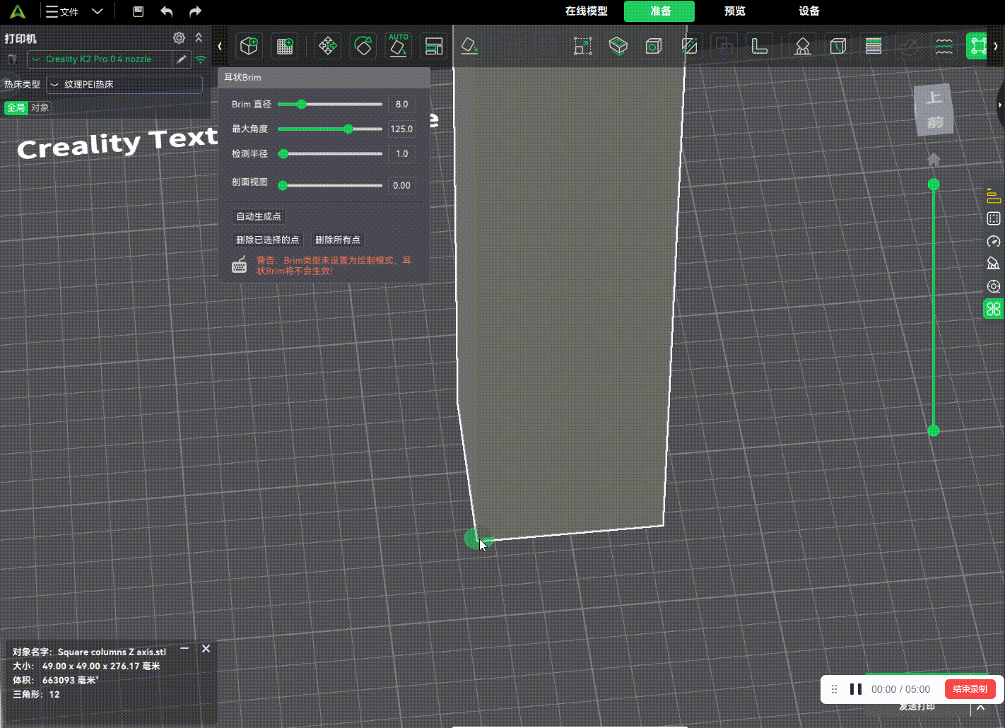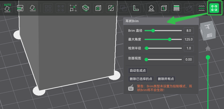 支持在模型底部自由绘制局部附着结构,仅在易翘边区域添加“耳状”Brim,有效提升打印稳定性,同时避免传统全局 Brim 带来的材料浪费与后处理负担,实现更精准、更高效的底面附着控制。感谢@SoftFever的贡献。