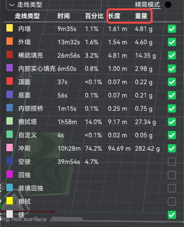 新增可在预览界面查看每种走线类型的用料(长度/重量),便于成本评估和参数优化。