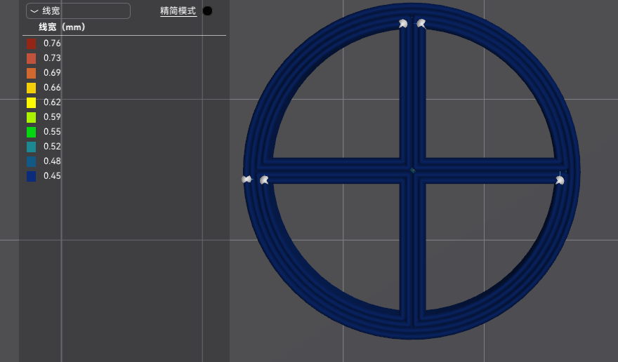 Arachne墙会动态调整墙的挤出线宽,使其更贴合模型形状以还原模型的细节特征。这可以更好地处理细小特征,并实现墙数量之间的平滑过渡。