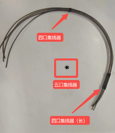 连接料管束,将安装四口集线器(长)的一端安装到工具头五通上,另一端连接到CFS Lite顶部四个通道。