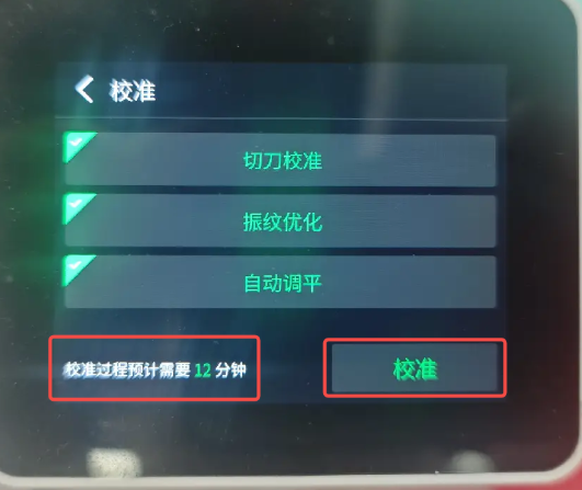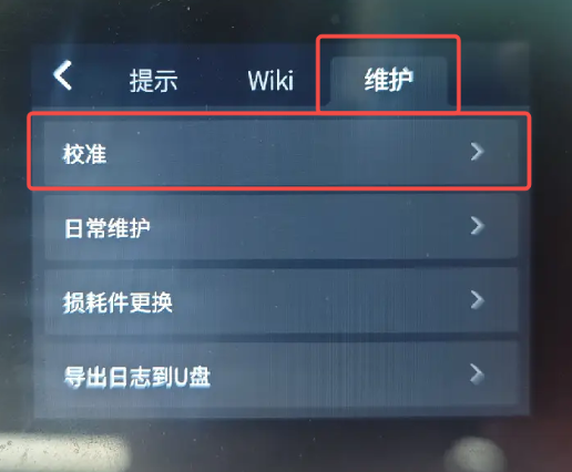 在机器屏幕端,点击“帮助 - 维护 - 校准”即可进入自动校准页面;