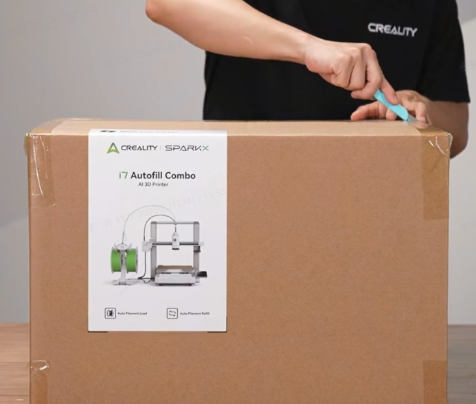 使用剪刀裁开纸箱顶部胶带,打开外纸箱