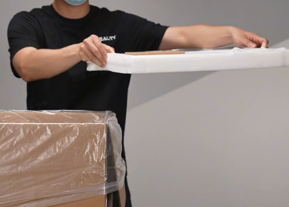 取下四根保护纸壳,打开防潮袋,取出顶部所有泡棉以及相关配件;
