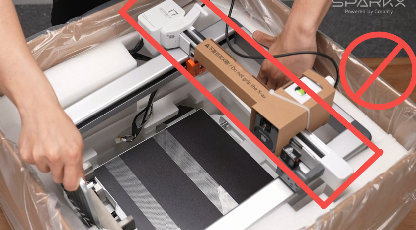 注意!取出龙门架时不要抓握X轴!