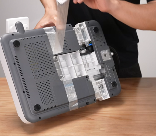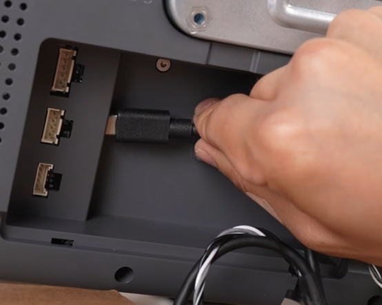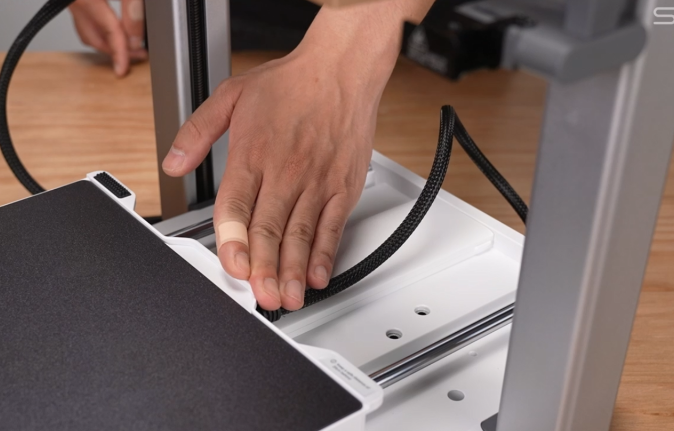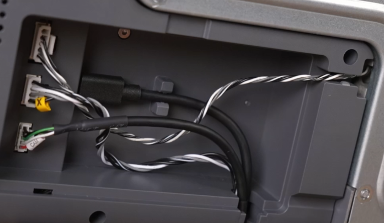 接好后将线缆卡入线槽,盖回盖板并将机器摆正;
