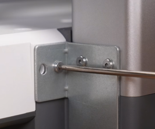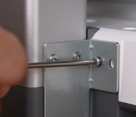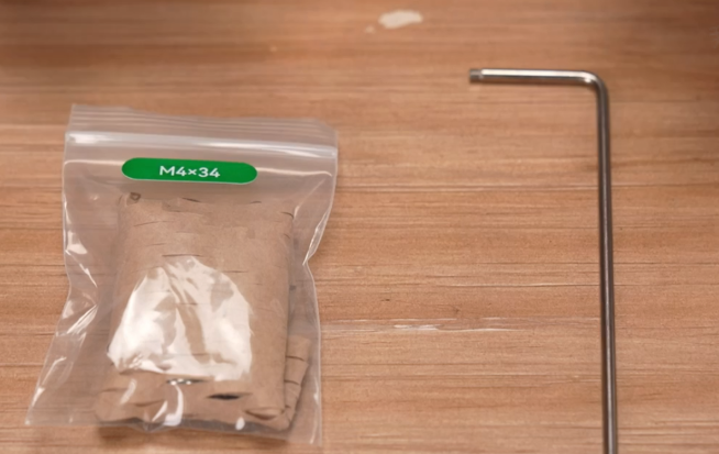 取出配件中较短的螺丝,使用H2.0内六角扳手从龙门架两侧锁紧;