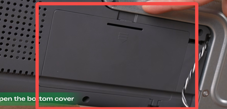 将机器向左侧侧躺放置,露出机器底部;打开底部盖板,将各个端子接上(端子与接口一一对应,不匹配则无法插入,请勿使用蛮力!)
