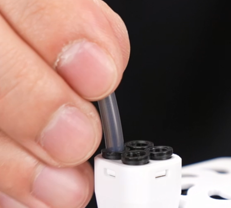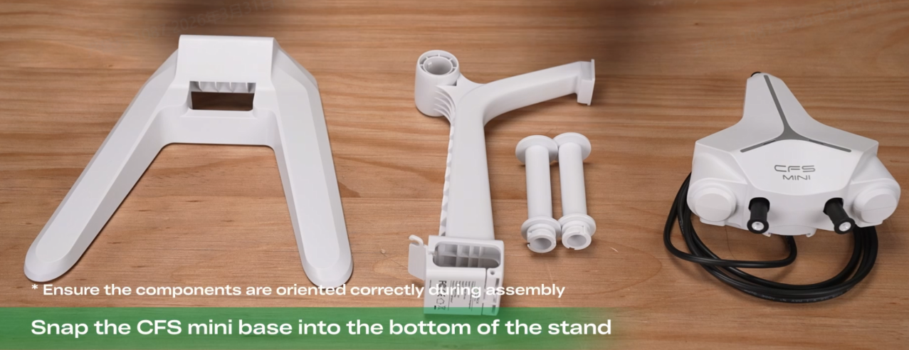 安装料架底座,扣上卡扣(注意安装方向!)取出CFS Mini,将CFS Mini划入料架固定;