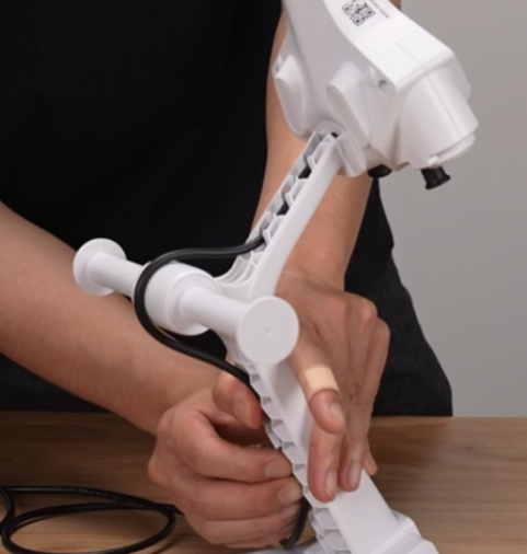 使用料架上的线槽固定485通讯线,并将通讯线插入机器左侧的485接口;
