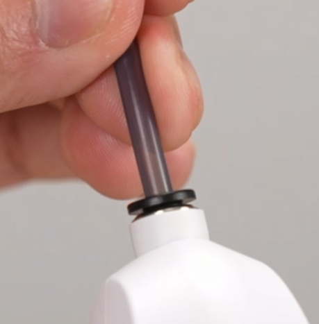 取出包装内料架配件,将两个耗材挂筒对准料架上对应位置的缺口,旋转固定到位;